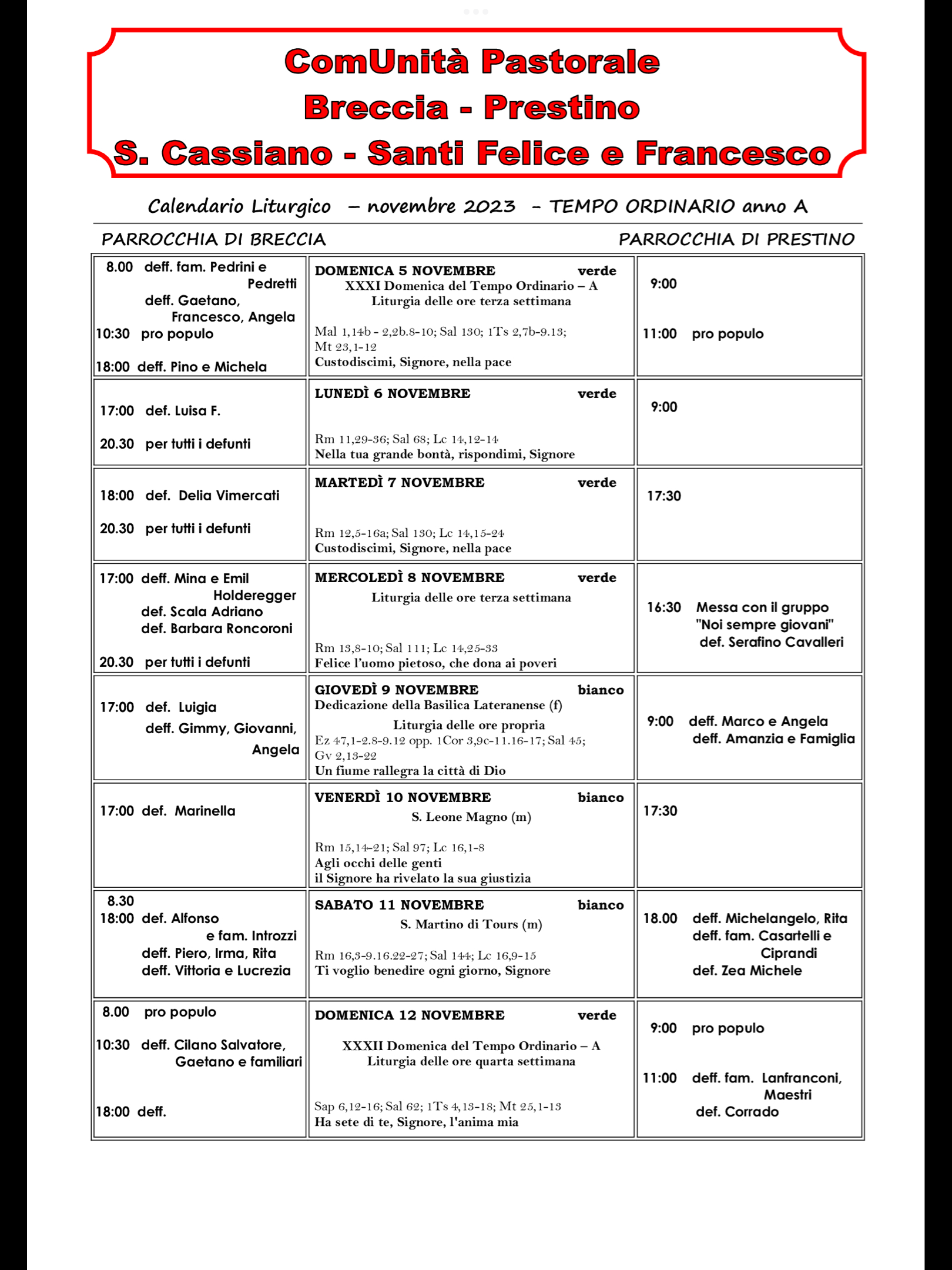 In Agenda dal 5 al 12 novembre Agenda parrocchiale/ In home page 4 novembre 2023, parrocchiadiprestino