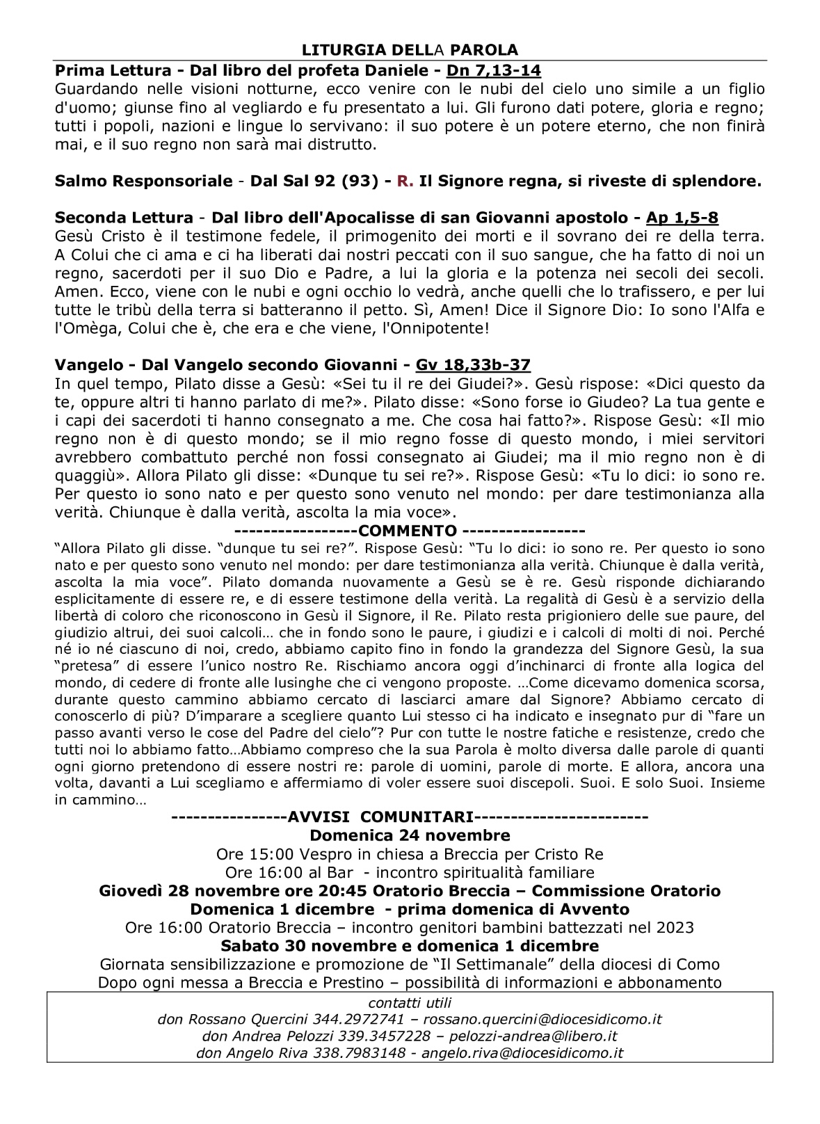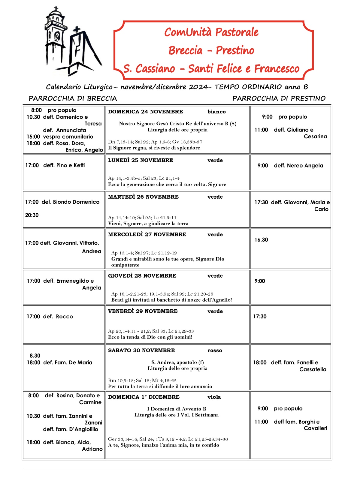 In agenda dal 24 a domenica 1 dicembre Agenda parrocchiale/ In home page 23 novembre 2024, parrocchiadiprestino
