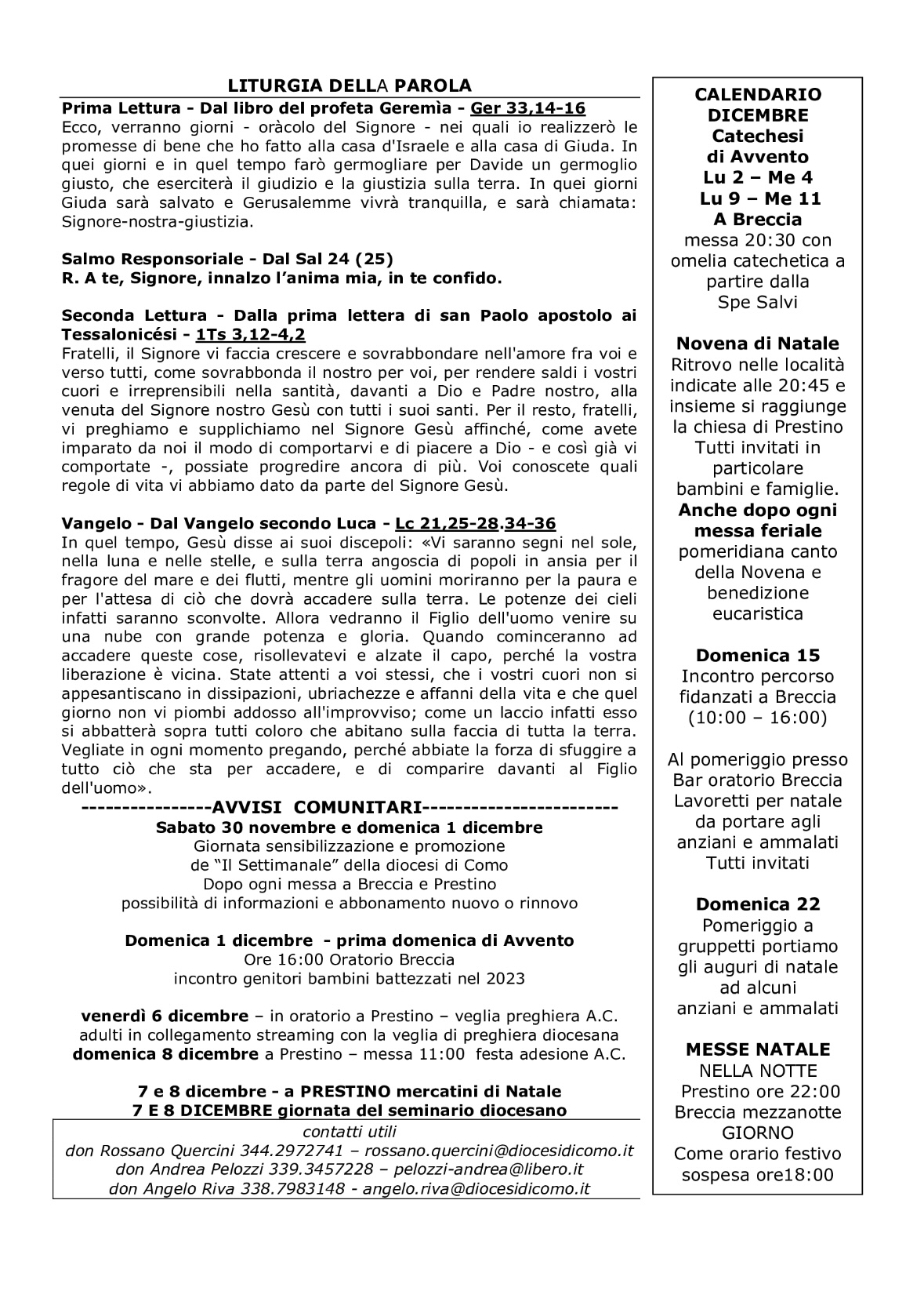 In agenda dal 1 al 8 dicembre Agenda parrocchiale/ In home page 30 novembre 2024, parrocchiadiprestino
