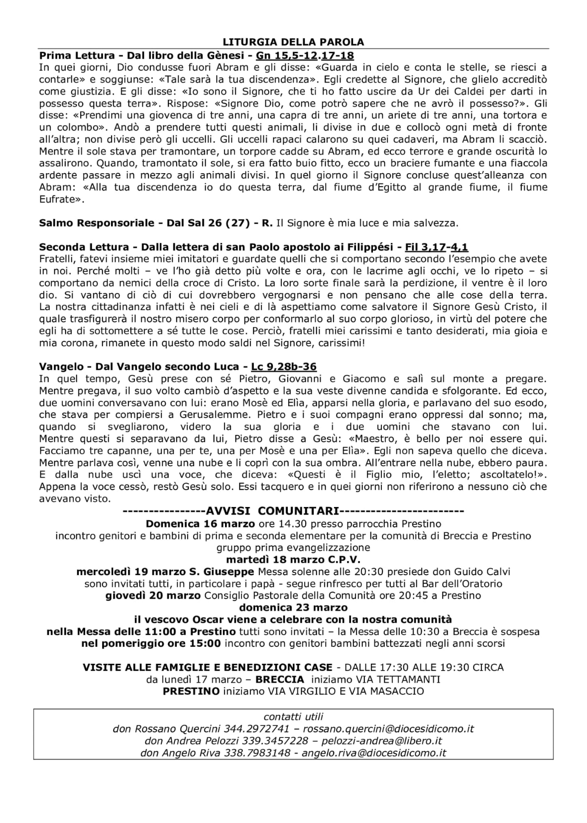 Parola della Domenica-commenti alle letture