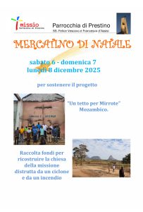 Dal 6 al 8 dicembre mercatino di Natale Gruppo Missionario/ In home page 29 novembre 2025, parrocchiadiprestino